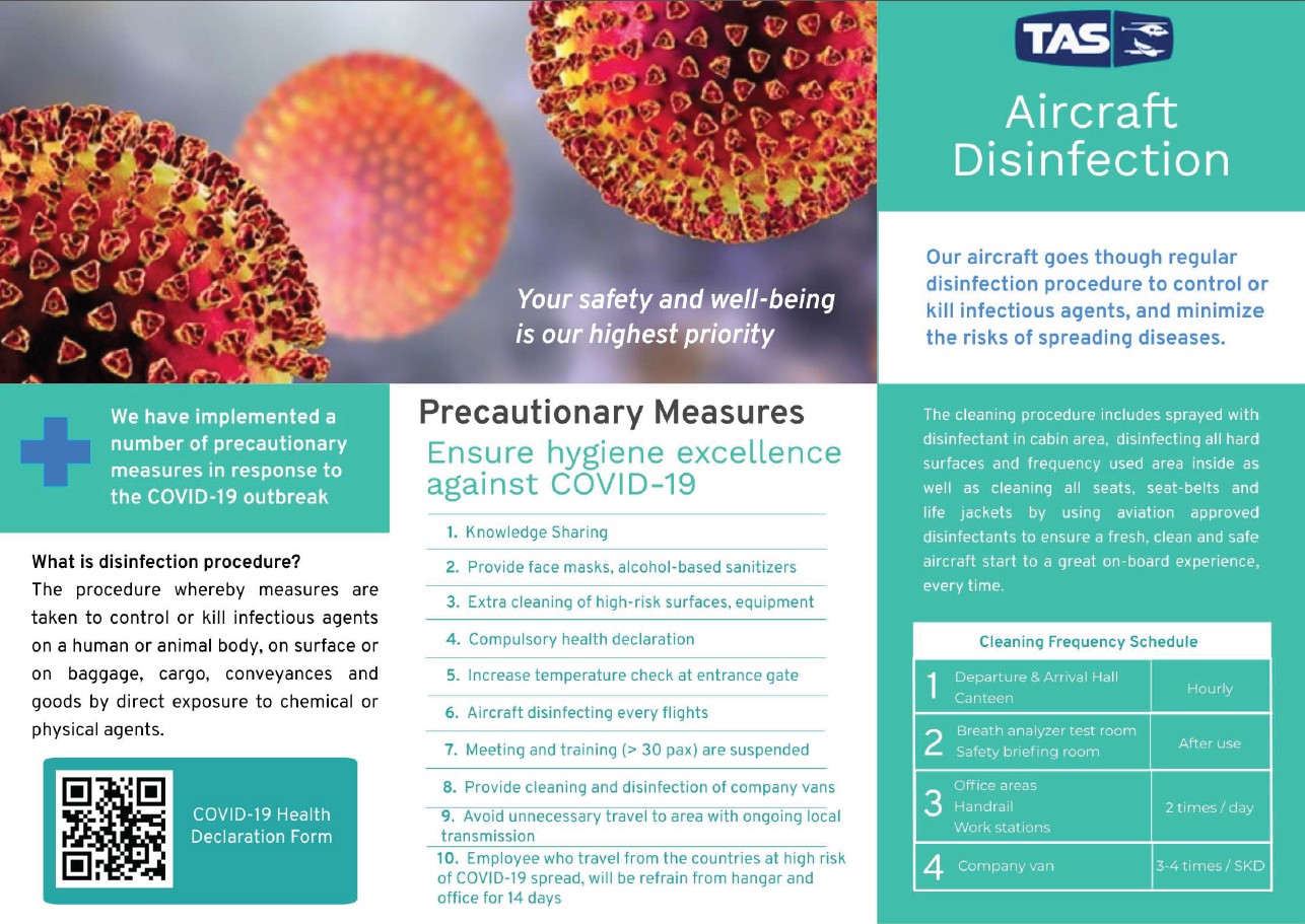 Our aircraft goes though regular disinfection procedure to control or kill infectious agents, and minimize the risks of spreading diseases.
